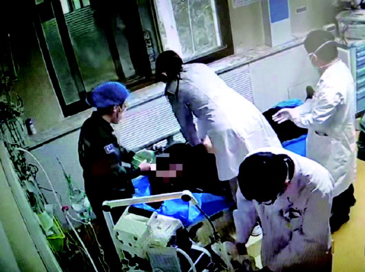 2月13日下午四点多,急诊科的医护人员正在进行科室业务学习,抢救班的护士收到院前的电话,告知准备抢救复苏的设备,过来参加业务学习的医护人员刚准备好监护、除颤、呼吸机等装置,救护车已经回到了医院,一位中年患者突然心跳呼吸停止,正在讲课的急诊科主任张晓晶立即安排医护参与抢救,有条不紊的进行抢救。