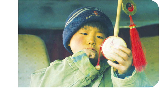 《拨浪鼓咚咚响》用非常写实的拍摄手法,展现了一个落魄的成年人和一个熊孩子,碰撞在一起的欢乐和治愈。苟仁愿意和毛豆结伴同行,因为他要找到毛豆的父亲毛厚赔偿他的货物损失,所以刚踏上寻父之旅的两人每晚还要仔细算账,账单一笔笔地加,让毛豆一次次摁手印打欠条。全片最有趣的地方,在于两个非专业出身的演员,如何演绎一段完全不同的“父子之情”。由演员惠王军扮演的苟仁,从对毛豆的厌烦,逐渐转化为对毛豆展现父爱,在几场冰面的追逐戏上,都显现出人物的情感变化。