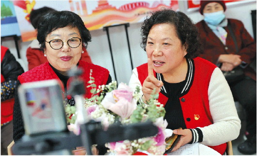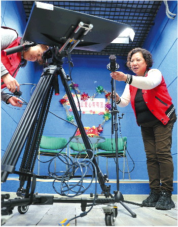 每周二、四、六上午,赵惠(右)都会和帮帮团成员在直播间线上“发对象”。