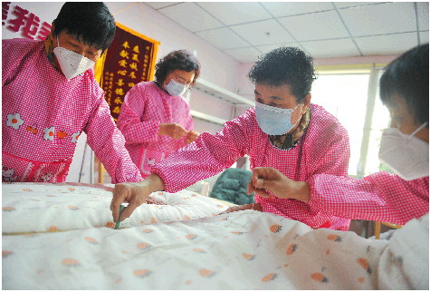 社区居民都很相信她们的眼光和手艺,还称赞她们为社区的“女红天团”。这些年过花甲的女红志愿者们,缝完棉被还要赶回家给家人做饭、接孩子,平时还在社区担任其他活动的志愿者,发挥着自己的余热。