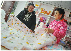 马萍说,最初刚成立爱心缝纫小组的时候,社区居委会给了1000元作为“启动资金”,她们用这些钱去进货,不够的时候就自己掏钱补上。社区居民来做被褥,她们全都是义务为居民服务。一床被褥只收取15元手工费,对于一些老弱病残的居民,则一概免费。平时所收的微薄手工费也全部纳入社区基金会,用来帮助更多有需要的人。