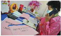 居民打电话或者前来求做棉被,马萍都仔仔细细地登记在本子上。