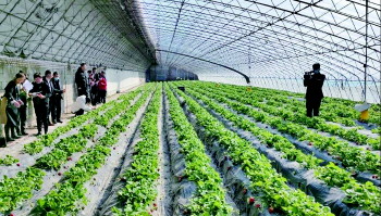 在于河圣裕果蔬基地草莓采摘园中,草莓都是生长在架子上,这也是潍城区积极探索的生态高效现代农业种植新模式。通过有机立体栽培方式培育出来的草莓个大、味甜、汁多,既能采摘又能观赏,深受游客的喜爱。“2017年与日本稲畑产业贸易有限公司合作投资300万元建设四个高效高温生产大棚,并引进了阿格里斯高架草莓种植设备和技术。”于河圣裕果蔬基地负责人说,2018年引进无土栽培设备和技术,2019年投资400万元兴建了草莓育苗基地。如今,“小草莓”成了带动村民增收的“金果果”。