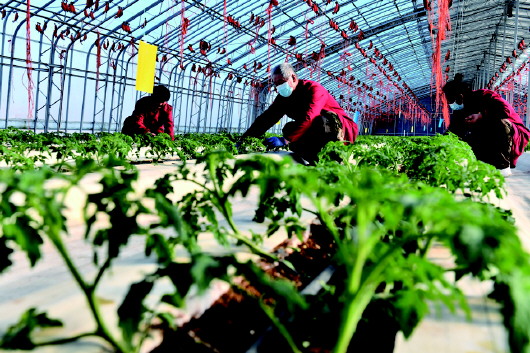 大棚设施产业的兴旺发展,不仅为乡村带来了致富新路子,也为周边村民就业增收创造了良好条件。“就在家门口上班,挺方便的,不仅上班有工资,还能拿到土地流转费。”正在忙着采摘黄瓜的大娘笑着说。