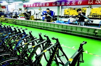 “生产线的每一道工序都实现了自动化和半自动化,能节约30%的人力,比如手工裁切改成了自动裁切,成型、拉模工序还使用了机械手,另外,生产线沿用了以前的二维码系统,还增加了RFID射频等,确保从产品‘出生’到交到消费者手中,每一道工序信息的收集,零件、产品等的详细信息都可以查到。”彭晓飞告诉记者,自行车订单已经排到了明年。
