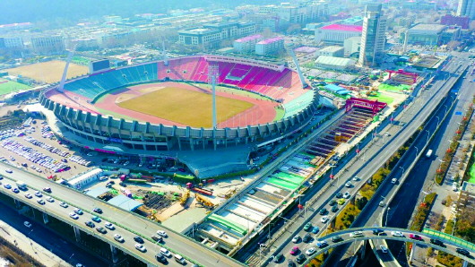 济南轨道交通4号线省体育中心站正在进行车站主体施工。