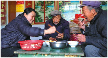 张玉梅的家距大伯家有100多米,从嫁入闫集村的那天起,在这条路上,邻居们总能看到张玉梅的身影,这一晃16年过去了。“每天去看看老人,只有他们好好的,心里才踏实。”