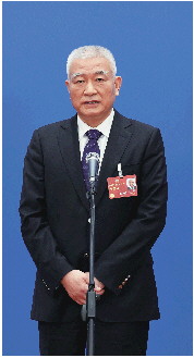 3月5日,生态环境部部长黄润秋在“部长通道”接受媒体采访。