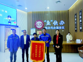 2月9日上午,山东鲁泰华盛化工科技有限公司法定代表人陈祥辉把一面锦旗送到鱼台行政审批局,“心系企业服务好,规范快捷效率高”简单的两行字,淋漓尽致地表达了企业的心情。“我亲自参与了企业开工投产前的全流程手续办理,也切身体会到了她们服务的专业和效率,超期完成了鲁泰控股集团公司下达的任务,借锦旗以表谢意。”