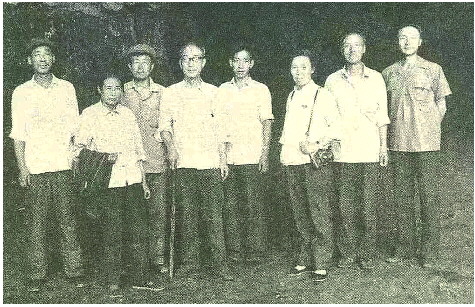游寿(左二)和考古界同仁在嘎仙洞合影。