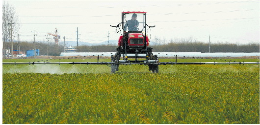 2月22日,山东省嘉祥县龙腾农机作业服务专业合作社机手驾驶植保机为麦田施肥. 新华社发(资料片)