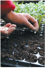 2月28日,滨州市惠民县淄角镇狮豹刘村农民在育苗大棚内播种芸豆种子。新华社发