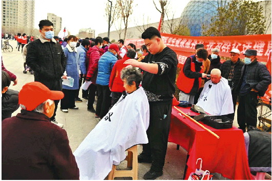 随着活动的启幕,“济北手造非遗产品”“理润济阳宣讲”“现场义诊”“墨香济阳”“免费理发”“应急救护培训”等项目展位也在春阳里温暖“开张”,吸引了大批市民群众的关注。“志愿红”匆忙地穿梭,热情地向往来居民宣讲和引导服务。在开元社区爱心义剪展位上,志愿者正忙着为多位老人理发。刚理完发的刘奶奶连连赞许说:“咱们的志愿者理发不花钱,态度还好,我常年在咱们社区理发。”