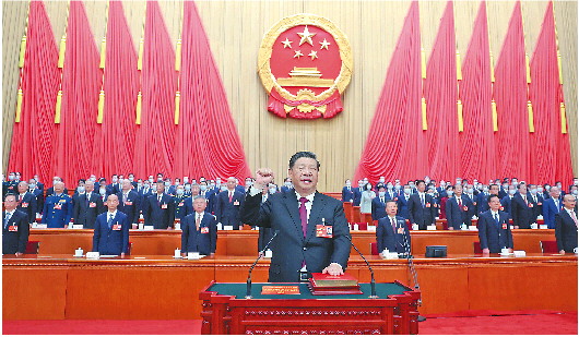 神圣誓言回应着代表们以14亿多人民的名义作出的庄严选择,印刻着一个大党大国领袖始终不渝的赤子情怀。