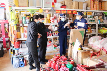 检查现场,联合检查组严格按照法律法规,对消防产品经销商有无经营许可证、消防产品来源途径是否正规、质量检测报告和合格证书等资料是否齐全进行现场检查。通过抽查、扫描产品二维码的方式,详细按照消防产品质量技术规范,就市面上销售的手提式干粉灭火器、消防应急灯具、疏散指示标志、消防水带、室内消火栓等各类常用消防产品是否保持完好有效、是否通过国家强制性产品认证和型式认可、是否存在掺杂假冒伪劣产品等现象进行了详细检查和现场测量,严格排查销售“三无”消防产品违法行为,并手把手指导常见的消防产品判定标准和辨别方法,要求经营者严把消防产品质量关,从销售领域上杜绝假冒伪劣消防产品的流通。
