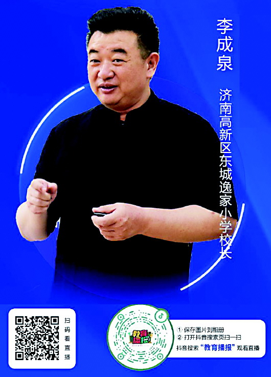 2021年,李成泉担任济南高新区东城逸家小学校长。他与东城逸家小学的干部教师们一起,擘画着学校教育高质量发展的新蓝图。李成泉认为,君子教育就是立德树人,目标就是培养中国心、民族魂、文化根、创新力的新时代少年君子,进而培养君子学生、塑造仁爱教师。