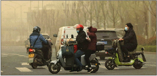 3月22日,济南遭遇今年最强沙尘天气,市民全副武装出行。 记者 王鑫 摄
