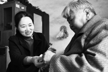 李爱华正在照顾婆婆。