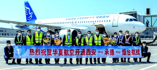 首航航班信息:西安—承德—烟台航线,由华夏航空公司执飞,机型是CRJ900;航班号是G54781/82;班期为每周一、三、五、日各一班。具体执飞时间:6:50西安起飞,8:45到达承德,9:35承德起飞,10:50到达烟台;11:50烟台起飞,13:15到达承德,14:05承德起飞,16:25到达西安。