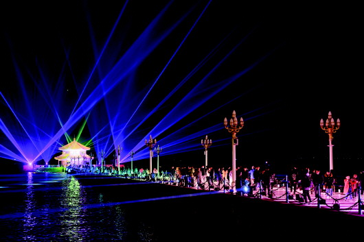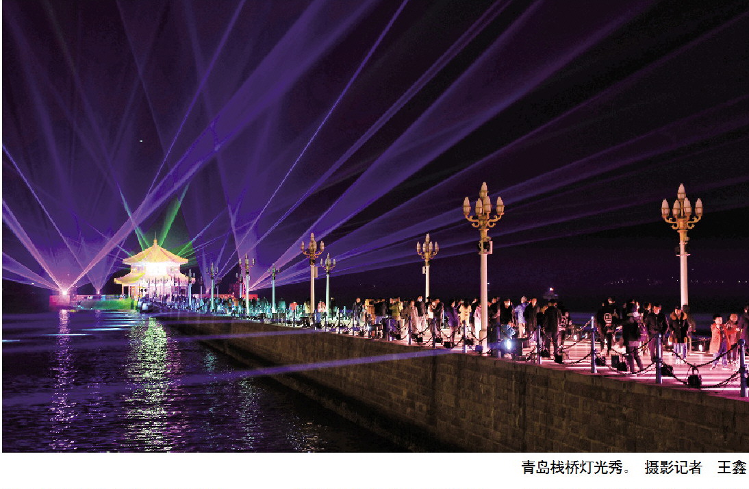青岛栈桥灯光秀。 摄影记者 王鑫