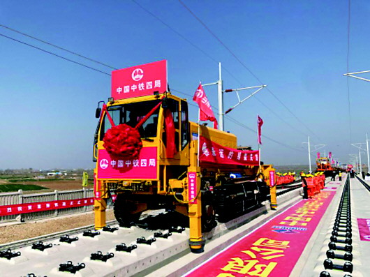 莱荣铁路正线铺轨总长380铺轨公里,由中铁四局集团承担铺轨施工任务。针对工程线管理区间长、多单位交叉作业等复杂工况,莱荣铁路在铺轨过程中,将使用集成无线网络传输、定位导航等技术的工程线信息调度指挥系统,实现调度指挥智能化、信息化、可视化,提高现场行车调度效率,确保工程线行车安全。莱荣铁路首铺方向由铺轨基地向荣成方向铺设,铺通后转场往莱西方向铺设,每天可铺轨10至12铺轨公里,计划2023年5月底完成全线铺轨施工,6月初完成钢轨放散锁定工作,7月初达到联调联试条件,10月底具备开通运营条件。