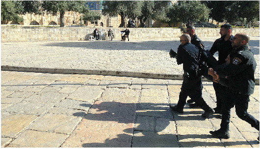 ◥5日,以色列警察在耶路撒冷老城阿克萨清真寺扣押一名巴勒斯坦男子。