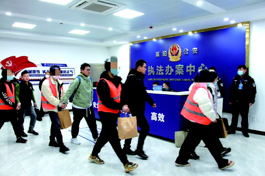 经过网上分析和网下摸排等工作,专案组民警掌握了所有涉案人员的窝点位置和行动轨迹,历经近6个月的时间,辗转7省12市,万里奔袭,分别于2022年9月25日在浙江、福建,2023年2月7日在四川、江西等地展开两次集中收网,将143名犯罪嫌疑人抓获归案。