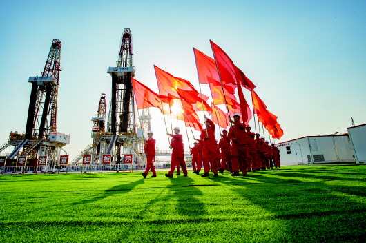 胜利石油工程公司干部员工在国家页岩油示范区——牛页一区试验井组展示出昂扬向上的精神风貌。 通讯员 刘铁 摄