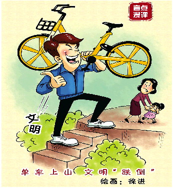 “‘抬共享单车上山’的挑战”,听起来就带着点新奇热血,还能展现体力、耐力,于是也具备了吸引人参与的“跟风”特质。很多人却都忽视了,抬共享单车上到山顶之后的事。比如,若参与者体力不支,共享单车滞留山顶,还要靠人力耗费大量时间抬下山来,平添他人的辛苦和成本。运维大叔李秀宝花4小时将一辆单车搬下山,付出的辛苦不应该被漠视。