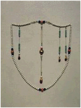 这个时期最有特色的串饰,当数齐国的水晶串饰。它由菱形水晶珠、圆形紫水晶珠、方形水晶管、竹节形水晶管等组成,制作工艺非常精湛,表面抛光极佳,完全用不着人盘,自身已经足够光滑和耀眼。
