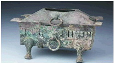 淄博西汉墓葬中出土的青铜方炉。