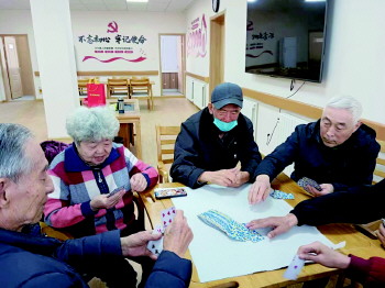社区居民在明湖社区养老服务中心进行娱乐活动