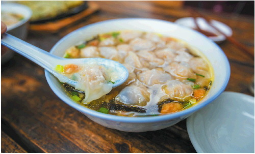 馄饨是纯肉馅的,两块钱一碗。热气腾腾的馄饨汤,浇了酱油、香油、香菜等调料。肉馅是香的,汤汁是香的,馄饨皮也是滑溜溜、香喷喷的。很快,我就吃了个碗底儿朝天——寒风凛冽的冬天,这碗馄饨,让一个穷学生体会到了前所未有的饱和暖。