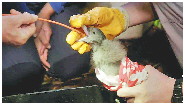 科学家给雏鸟催吐