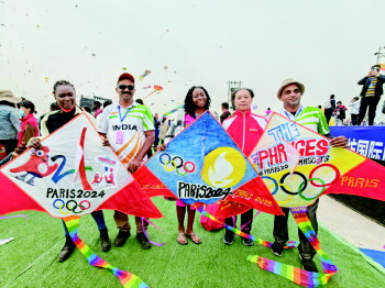 奥运风筝出现在风筝会现场,为2024年巴黎奥运会祝福。