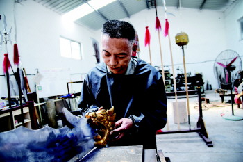 20多年来,董现行共制作了大大小小一千余件古兵器,其中不乏精品。“做人就像做刀,宁折不弯,我决不允许残次品从我这里流出去。”对于古兵器的品质,董现行看得很重,这是董现行的立业之本,也是他感情的倾注。从父辈手中接过来的“接力棒”,董现行在继承已有技艺的基础上,还为这门古老的技艺注入了时代的特色。