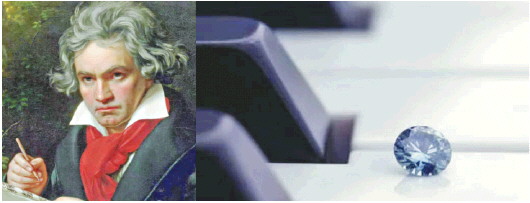 2007年,美国人工合成钻石公司——“生命宝石”公司,从收藏有贝多芬头发的美国康涅狄格州大学档案馆中,得到了贝多芬的10缕头发,这些头发已有200年历史。工作人员先将头发燃烧,从中提取出130毫克碳元素。之后,他们把这些碳元素分成三份,放入3000摄氏度高温下,再放在100万磅重物下压上2周,最后制成3颗蓝色钻石。