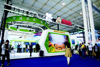 山东展馆创意奇特、妙趣横生。汇聚了智慧农业一流技术与案例,有单位面积产量“一顶十”、单位面积产值“一顶百”的超级设施农业——凯盛浩丰智能温室;有载着鱼儿去放牧,开启深远海养殖先河的智慧养殖工船——青岛国信1号;有精准监控、高效服务种植业生产、经营和管理的农业“天眼”——农业农村遥感数据中心,等等。展馆产品独特、技术新颖、生动有趣,让观众兴致盎然、流连忘完,好评如潮。