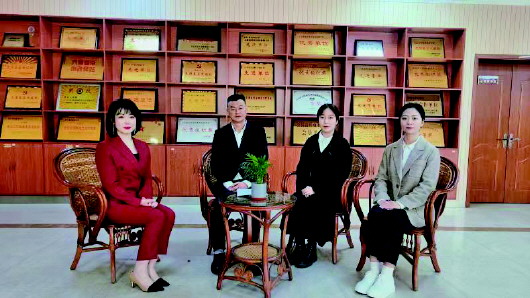 图为访谈现场:左一为记者孔令茹,左二为曲涛;右一为姜艳芳,右二为张子涵。