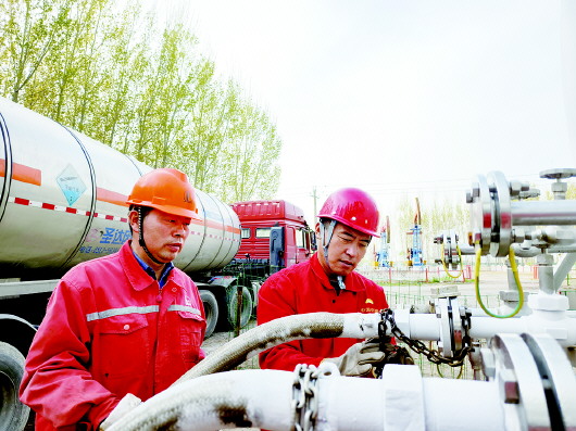 在无废油田建设中,胜利油田滨南采油厂牢固树立安全第一的思想,持续加强对承包商及直接作业环节的安全监督检查,强化输油干线二氧化碳分离、压缩、外运过程中的安全监控,确保二氧化碳外运安全万无一失。图为滨南采油管理三区员工,对承包商承运二氧化碳的装车全过程进行安全监督。