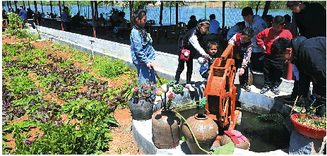 ▼徐斌自己设计的小水车浇地、观赏都是一景。