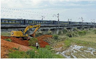 河堤上,装载着混凝土的货车不断驶向清丰堤溃口处。货车将混凝土倾倒在溃口处,再由挖掘机和推土机进行作业。据江西省应急管理厅消息,5月7日18时5分,经过抢险人员连续29小时的奋战,最后一车土石块倒入溃口处,推土机和挖掘机随即推平、压实,清丰堤溃口顺利合龙。现场施工人员介绍,“现在正在做加固工作。”而此时的京九线上,不断有列车驶过。