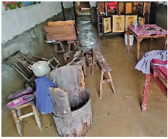 黄女士今年46岁,是村里为数不多的年轻人。发现街道上涌满了水,她心里很害怕。因为患有先天性贫血,她没办法外出务工,一直在家照顾11岁的女儿。她担心吓到女儿,让女儿先到楼上。“丈夫忙着将家电和鸡鸭都搬到楼上,我没有力气,帮不上他。”她顾不上看时间,只记得水冲进家里,客厅里桌子都漂了起来。村里停水停电,四处都是嘈杂的声音。