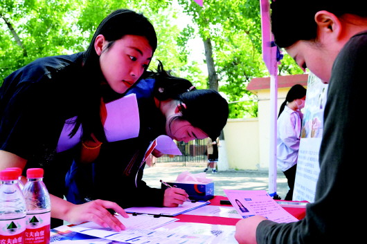 求职学生现场递交简历。 戴伟摄