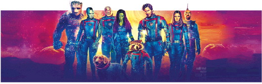 《银河护卫队3》作为引进大片,口碑很高,但票房依旧没能起飞,这也是《蜘蛛侠:英雄无归》之后,漫威引进大片的集体悲惨命运,超级英雄科幻商业大片再也无法在票房上呼风唤雨。这其中虽然有系列片引进断档的原因,更重要的是漫威宇宙电影的内容变化,从人物成长性故事过渡到多元社会主题的表达,再没有一部故事能像当初的“美队”“钢铁侠”等系列一样讲好一个完整、有感染力的故事。《银河护卫队3》没有像其他漫威电影一样,为了扩大人物宇宙跳入套路化的正反派叙事,而是用一多半的篇幅讲述火箭浣熊的个人命运史,回归到了人物成长和情感表达上,能很好地引发观众的共情和情感代入。影片也依旧保持了独特的审美趣味。