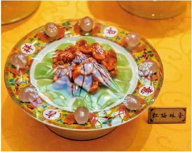 红梅珠香是满汉全席菜品之一,属于鲁菜,主要食材是鸽子蛋和对虾。