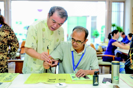 在槿椿颐养,随时与专业书法老师交流切磋,重温兰亭雅集之趣;在槿椿颐养,一键预约影音室,大片任选,看电影要比看电视还容易;在槿椿颐养,叫上三五好友下楼去K歌,不出家门也可以做大歌星;在槿椿颐养,雀友、牌友随心约局儿,打麻将不再愁老是三缺一……