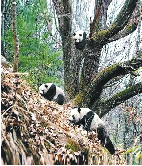 连日来,陕西佛坪国家级自然保护区巡护员,多次与秦岭野生大熊猫不期而遇。与平日独来独往不同,此时的大熊猫常常“组团出现”。
