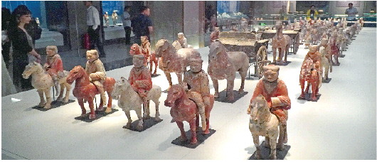 5月15日在青州博物馆新馆拍摄的正在展出的西汉彩绘陶俑。 新华社发