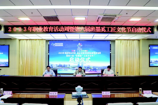 启动仪式通过线上线下同步进行,公布了《枣庄职业学院 枣庄技师学院2023年职业教育活动周暨第六届班墨奚工匠文化节活动方案》。